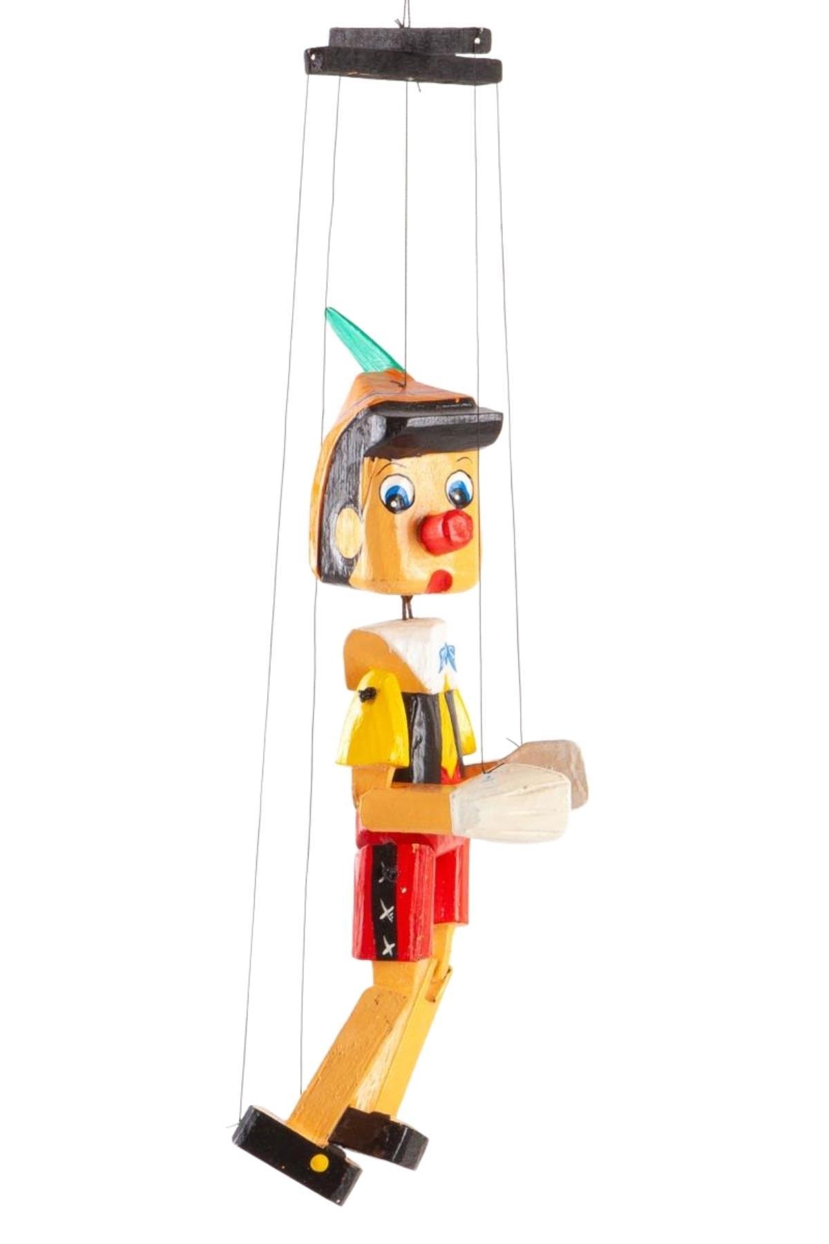 Pinokyo Kuklanın el ve ayaklarına ipler bağlıdır. Ahşap tutma kısmı hareket ettirilerek iplerin kontrolü sağlanır ve Pinokyonun el ve bacakları istenilen şekilde hareket ettirilebilir.