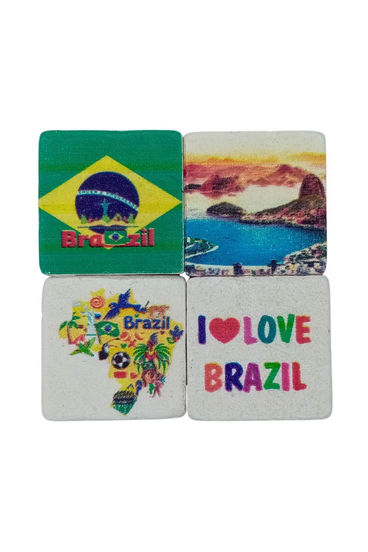 Brezilya Temalı Taş Dörtlü Kare Tasarım Buzdolabı Magneti, Brezilya tatilinizi ve anılarınızı size tebessümle hatırlatacak. İster kendiniz ister sevdikleriniz için güzel bir hediye, dekoratif bir hatıra olacak.