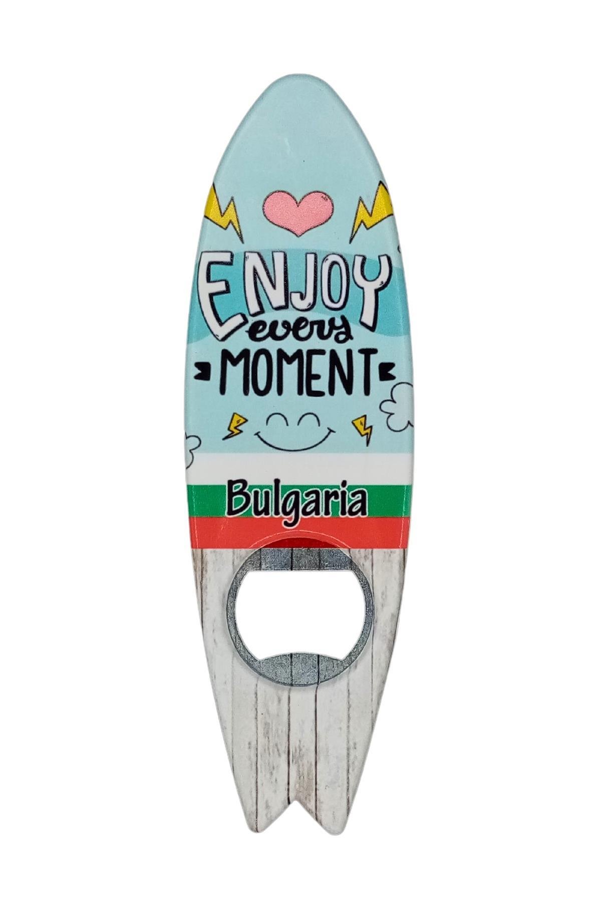 İster Bulgaristan seyahatiniz sonrası hatıra veya hediye olarak, isterseniz evinize ve iş yerinize dekoratif ve işlevsel amaçlı kullanabileceğiniz Bulgaristan temalı sörf tahtası şeklinde magnet şişe kapağı açacağı.