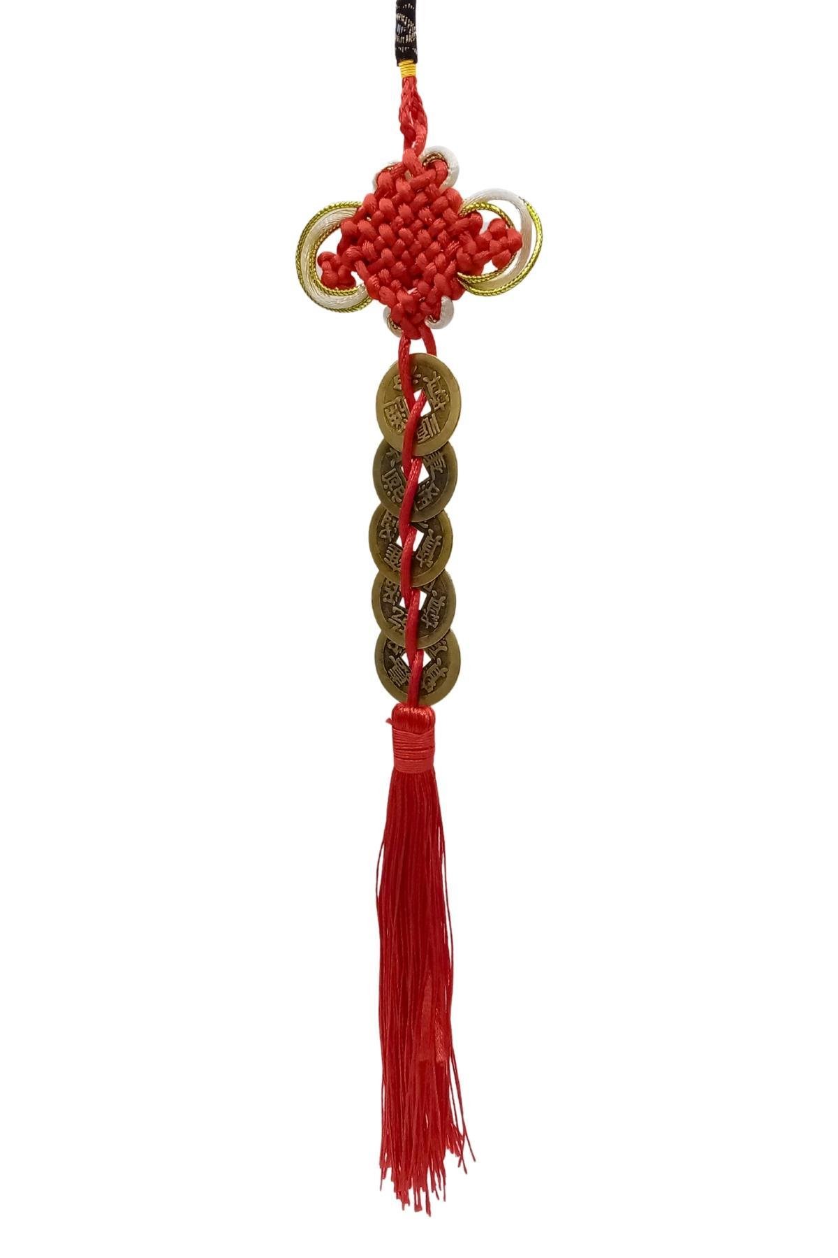 Çin Şans düğümlü, enerji arttıran kırmızı renkli Çin Paraları.
