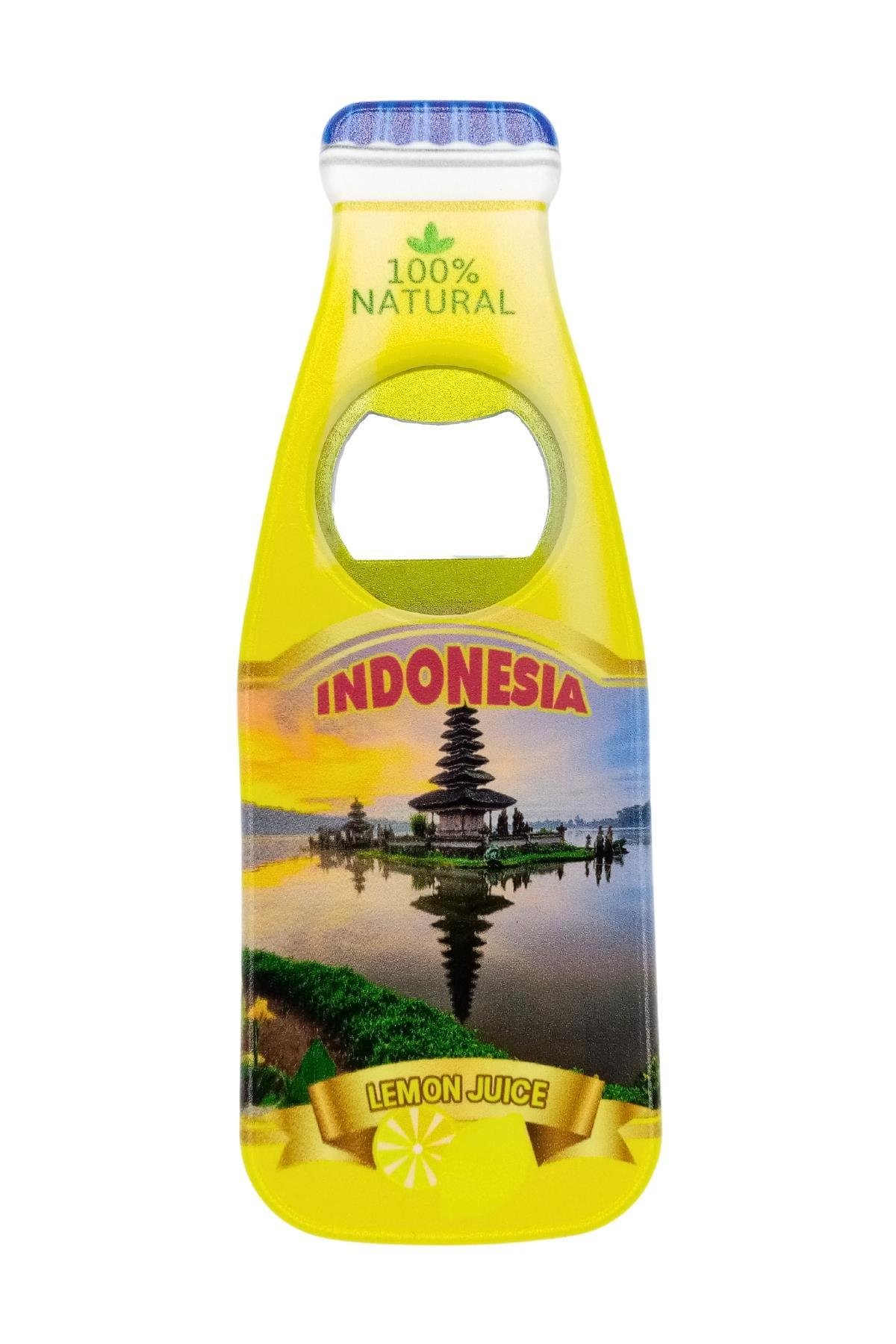 Endonezya temalı şişe şeklinde tasarım magnet ve şişe kapağı açacağıdır.