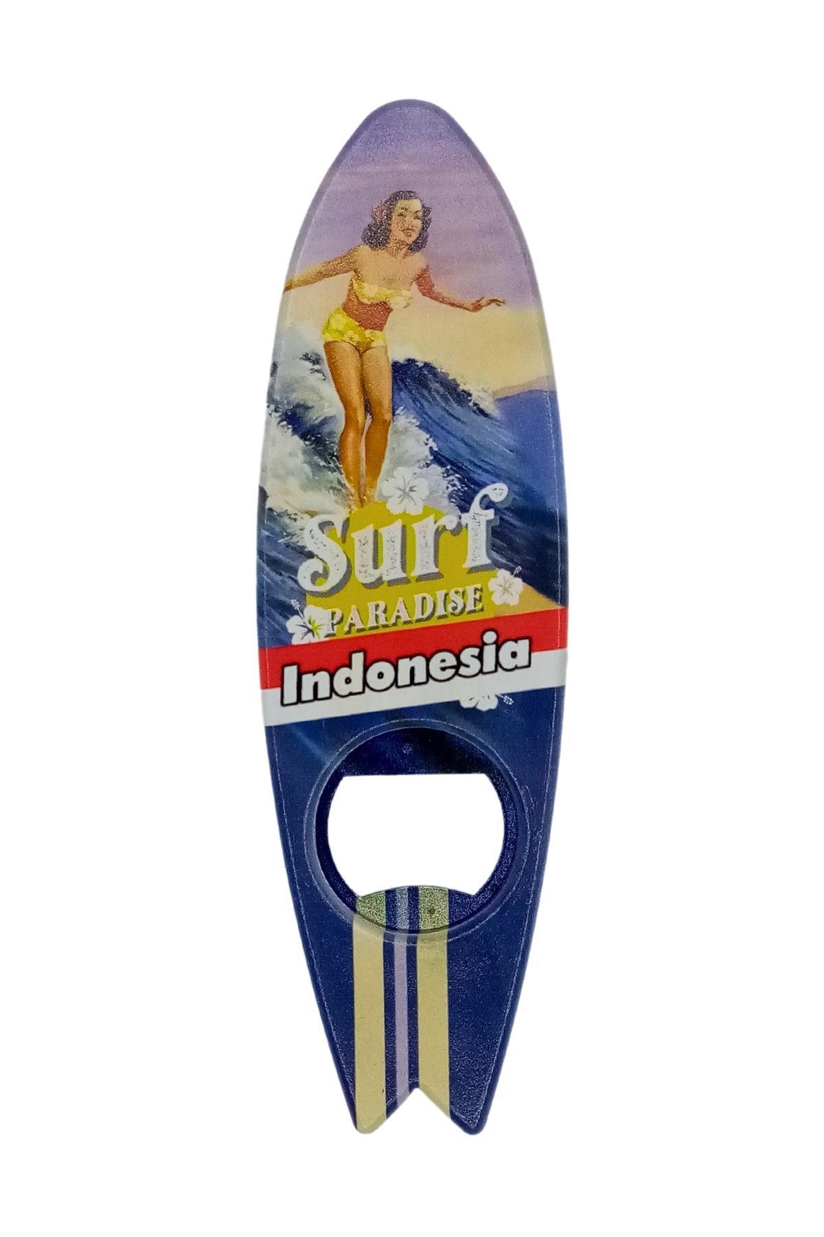 İster Endonezya seyahatiniz sonrası hatıra veya hediye olarak, isterseniz evinize ve iş yerinize dekoratif ve işlevsel amaçlı kullanabileceğiniz Endonezya temalı sörf tahtası şeklinde magnet şişe kapağı açacağı.