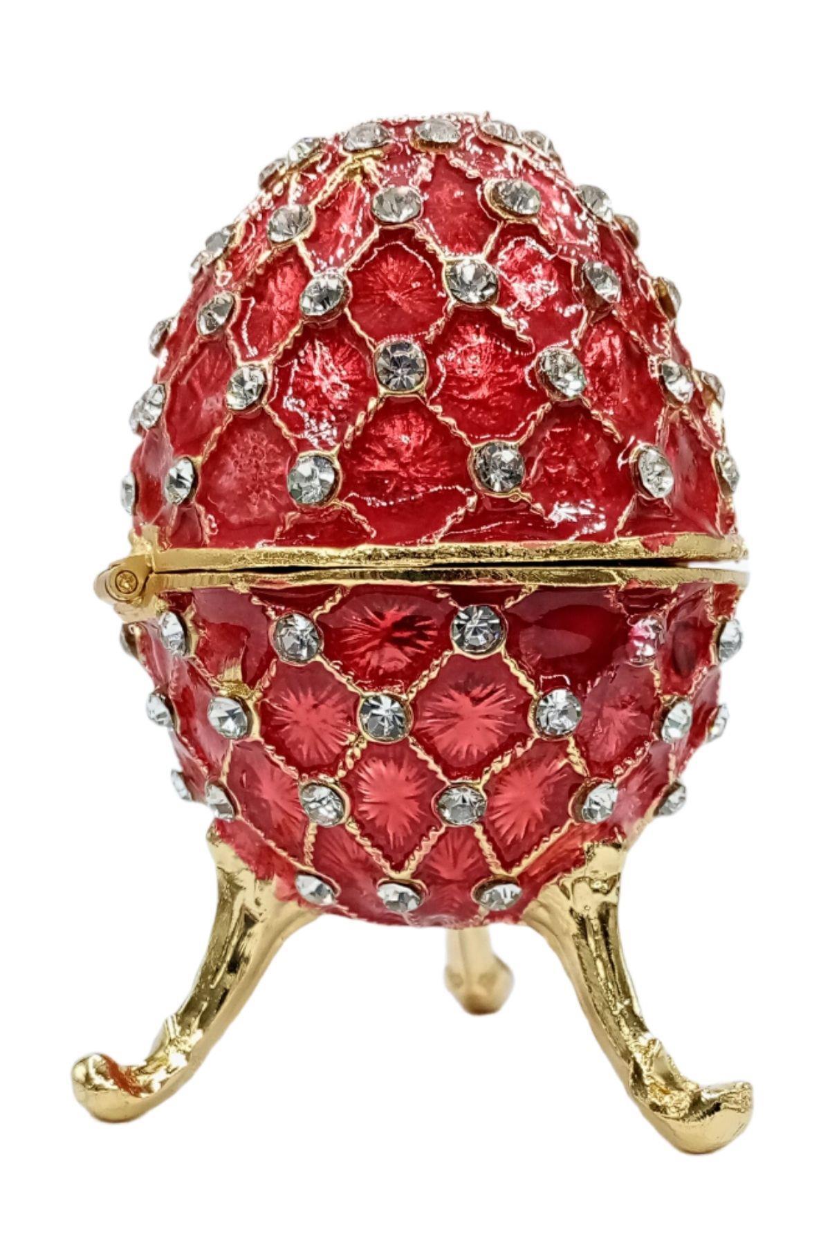 Malzeme: Çinko Alaşım Emaye Swarovski taşlıRenk: KırmızıMiktar: 1 adet/takım Hediye Kutusu ve poşeti dahil)Faberge Yumurta Ölçüleri: 6 * 6 * 10 cm Yükseklik