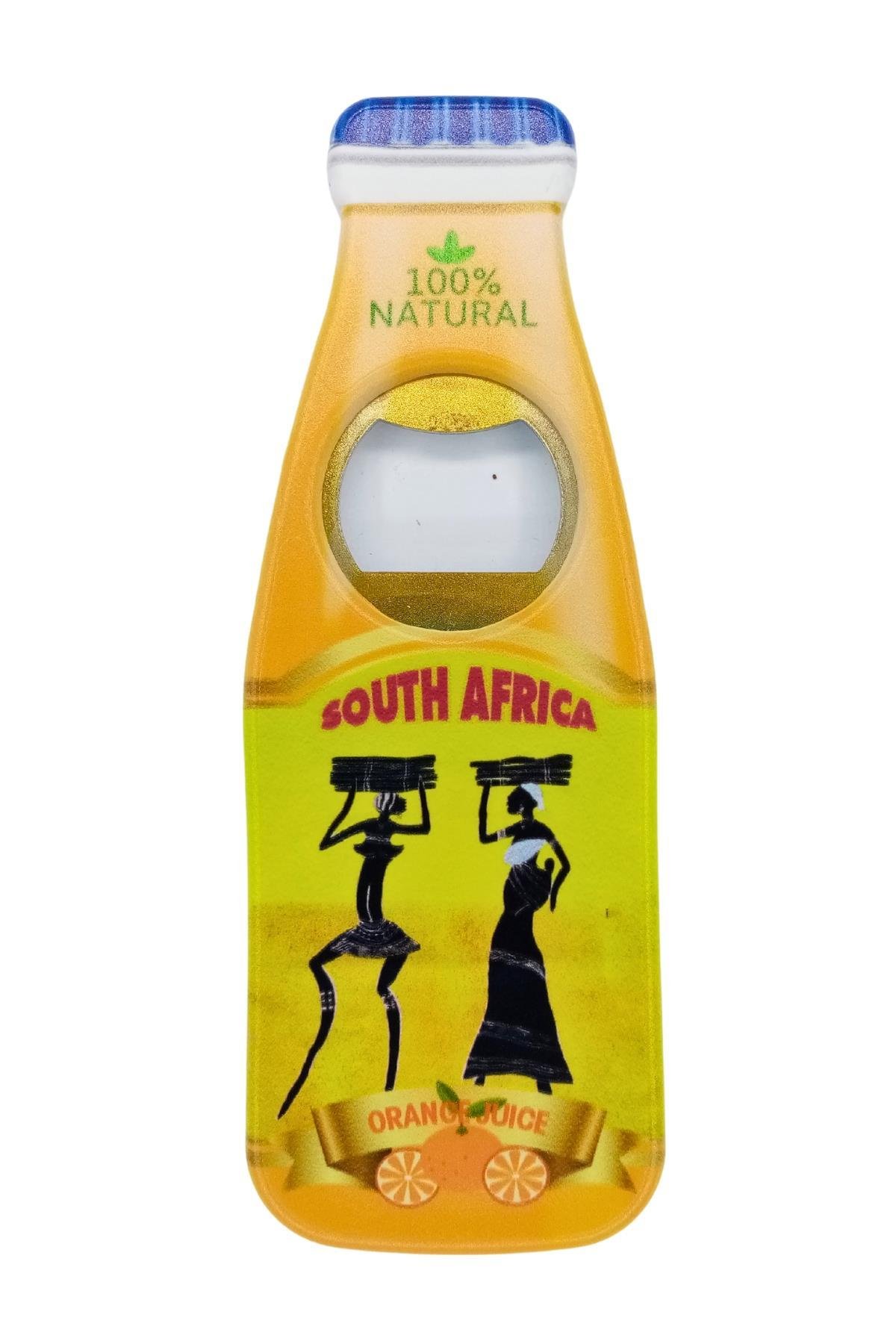 Güney Afrika Cumhuriyeti temalı şişe şeklinde tasarım magnet ve şişe kapağı açacağıdır.