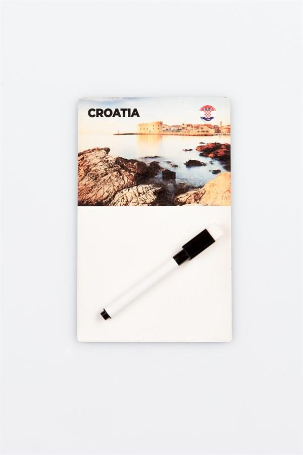 Hırvatistan temalı magnetli ahşap notluk, ahşap üzerine uv baskı tasarım, ön alt kısmına yazı yazılabilir ve silinebilir.