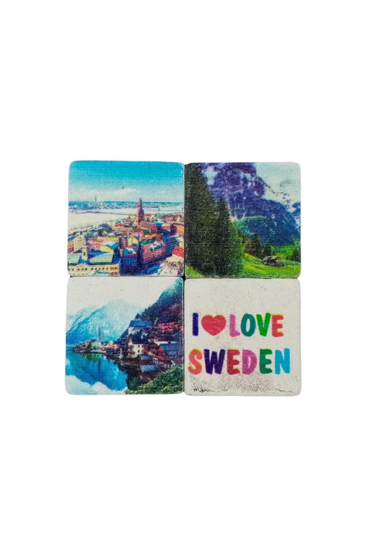 İsveç Temalı Taş Dörtlü Kare Tasarım Buzdolabı Magneti, İsveç tatilinizi ve anılarınızı size tebessümle hatırlatacak. İster kendiniz ister sevdikleriniz için güzel bir hediye, dekoratif bir hatıra olacak.