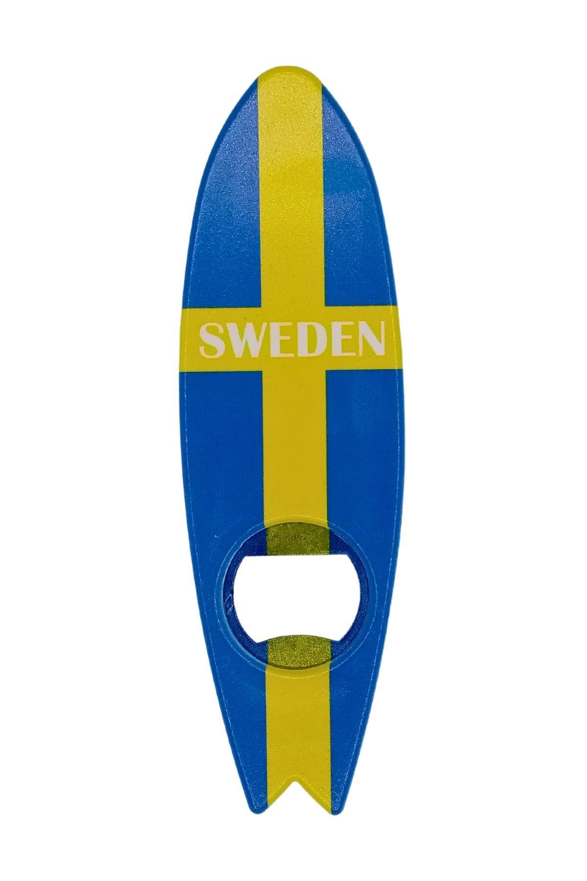 İsveç temalı sörf tahtası tasarım magnet ve şişe kapağı açacağıdır.