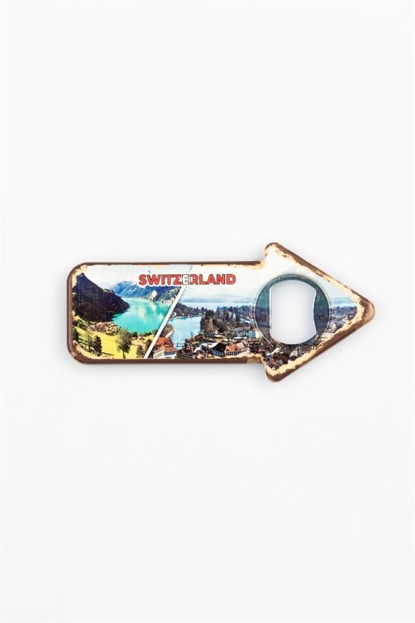 İsviçre temalı yön tabelası magnet şişe kapak açacağıdır.