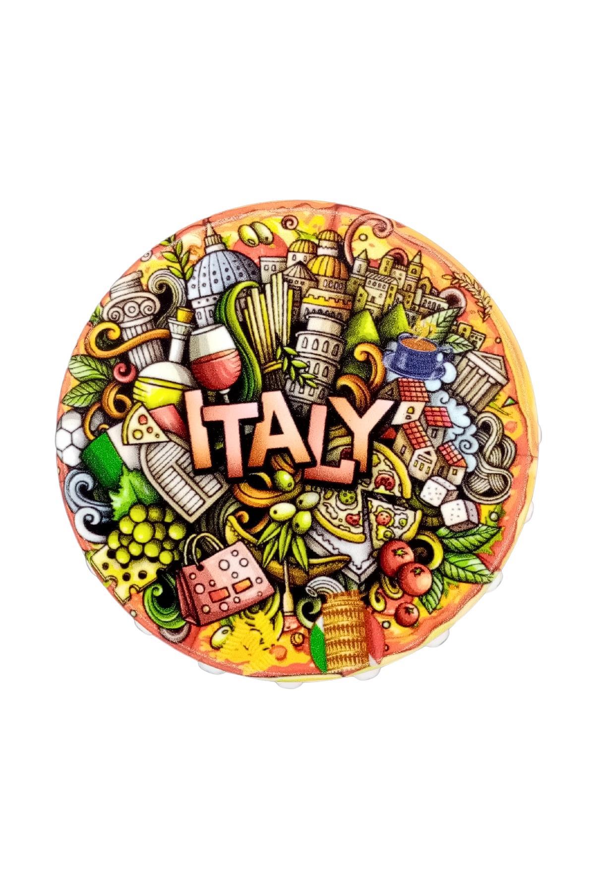 İtalya temalı şişe kapağı şeklinde tasarım magnet ve şişe kapağı açacağıdır.