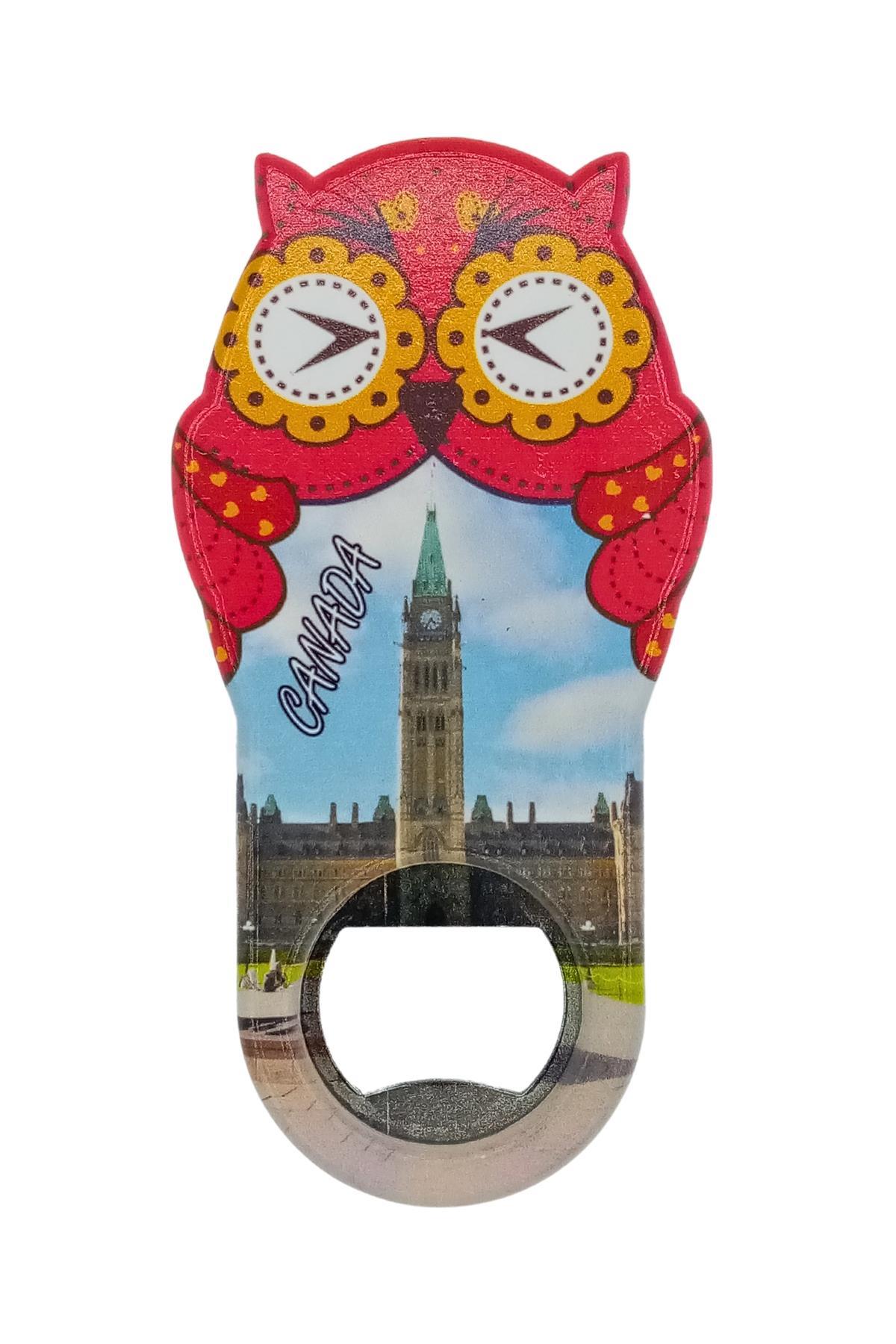 Kanada temalı baykuş şeklinde tasarım magnet ve şişe kapağı açacağıdır.