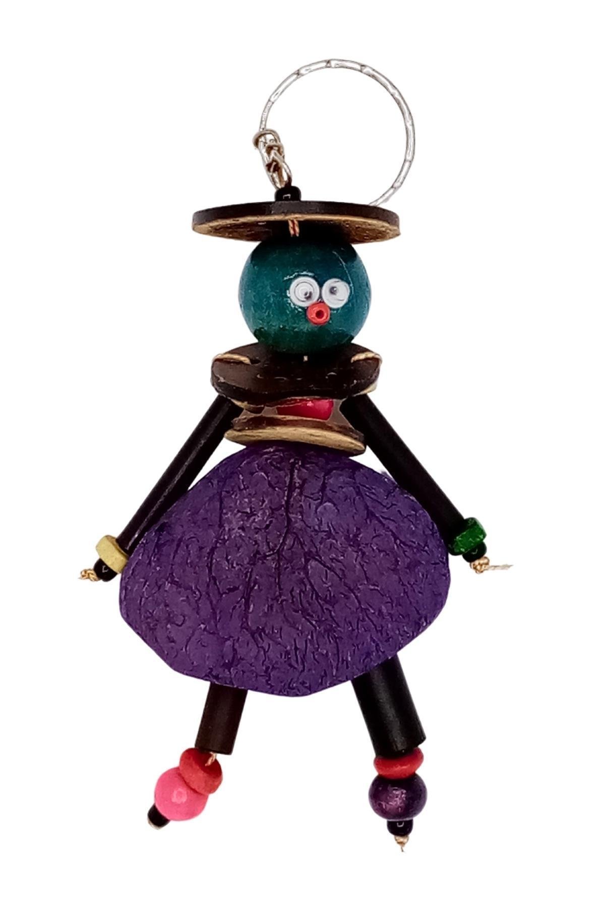 Endonezya Mangis Meyvesinden Yerli kadı figürlü Anahtarlık.Yerli kadın figürünün ahşap bacakları Kurutulmuş Mangis etek içerisinde sallandıkça hoş tınılar oluşturur.Mangis Rengi: Mor