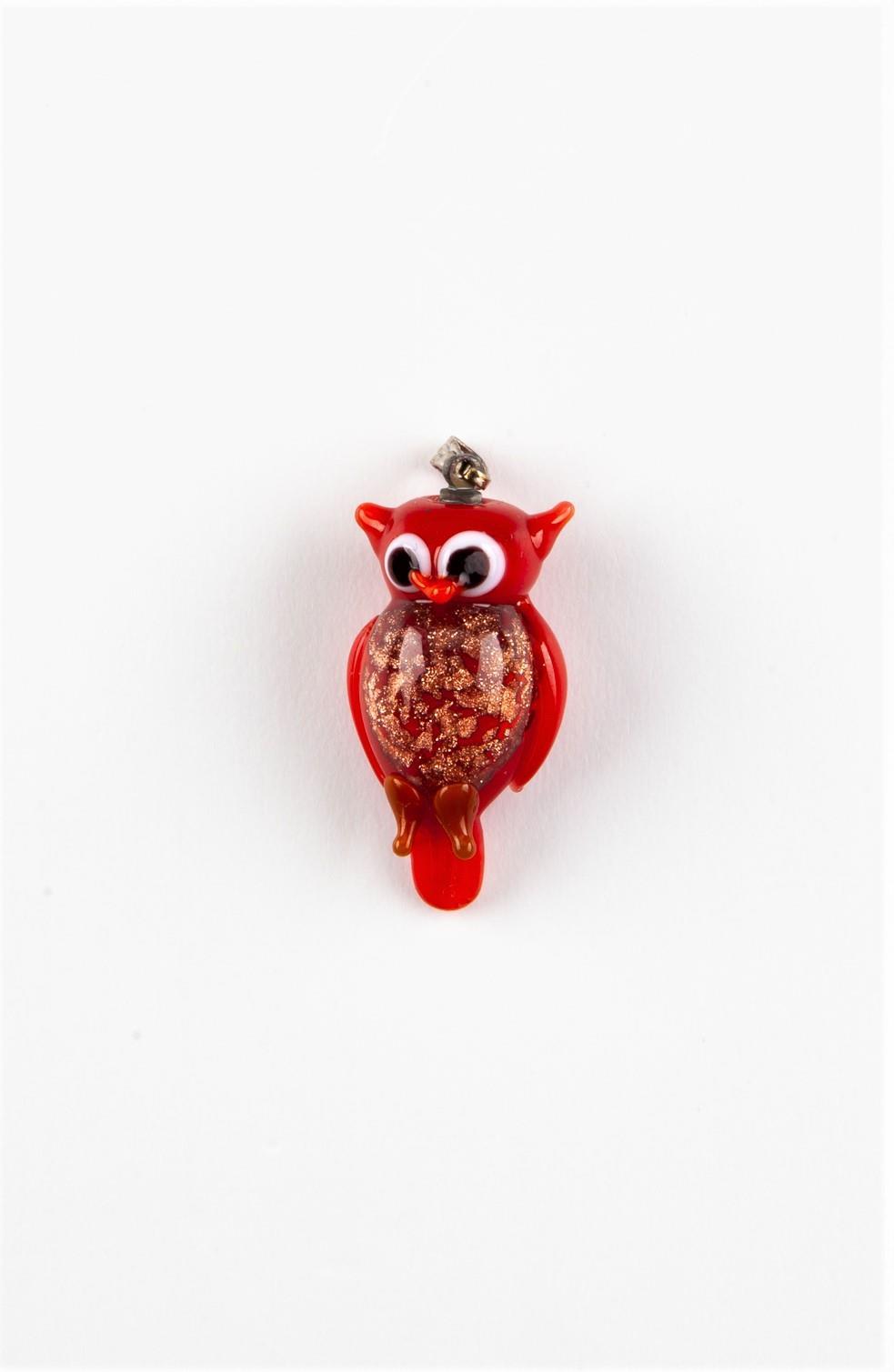 Murano Cam Simli Baykuş Kolye Ucu Kırmızı El Yapımı