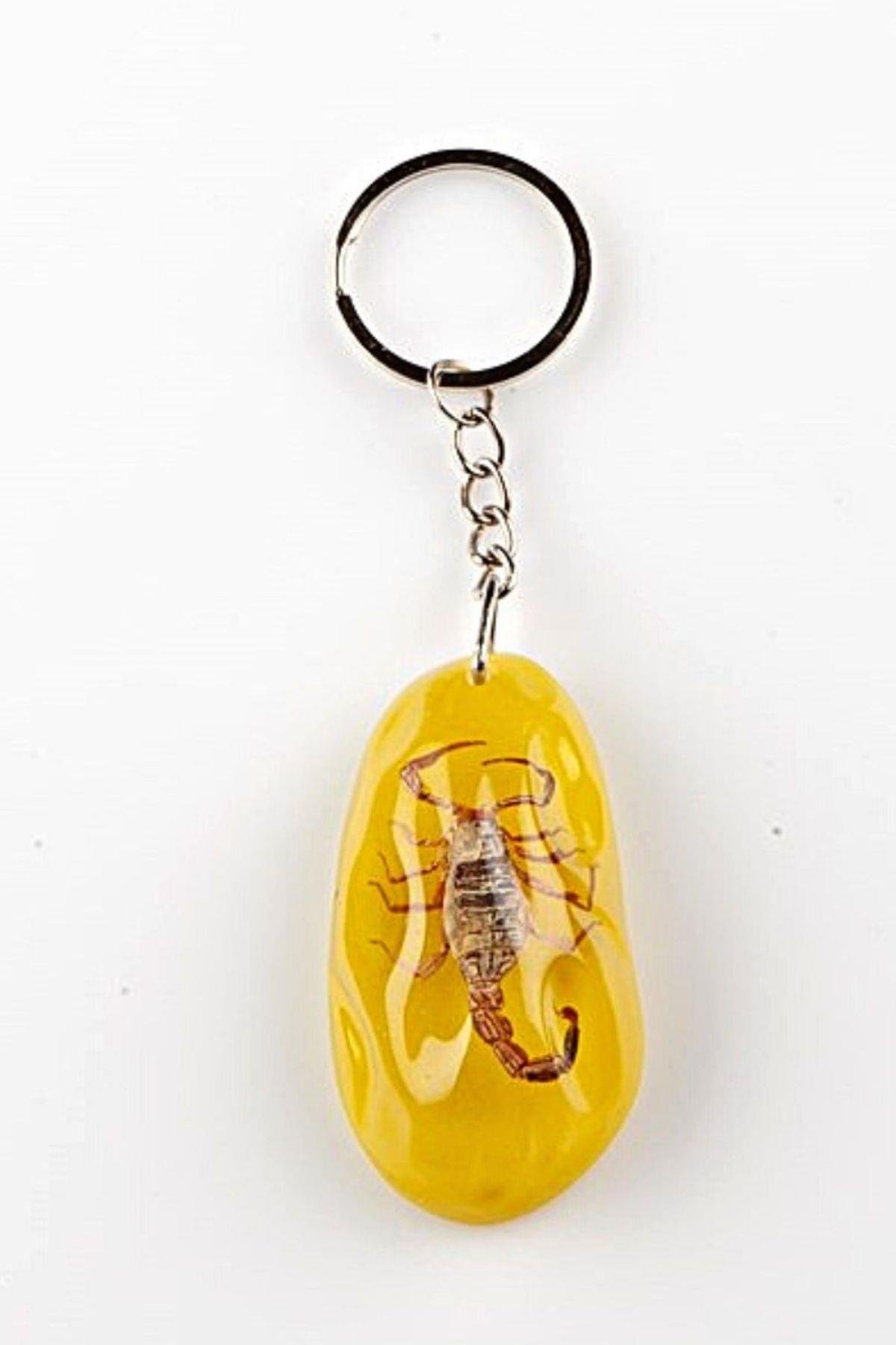 Sarı Şeffaf Reçine Anahtarlık Doğal Akrep Tasarımlı