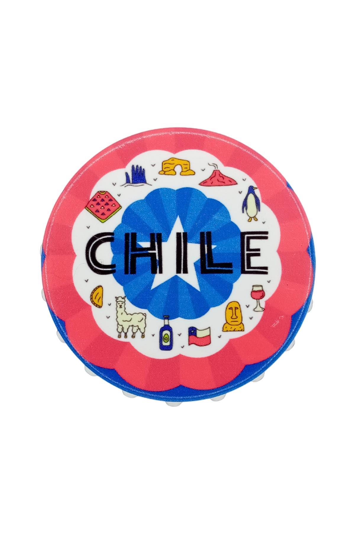 Şili temalı şişe kapağı şeklinde tasarım magnet ve şişe kapağı açacağıdır.
