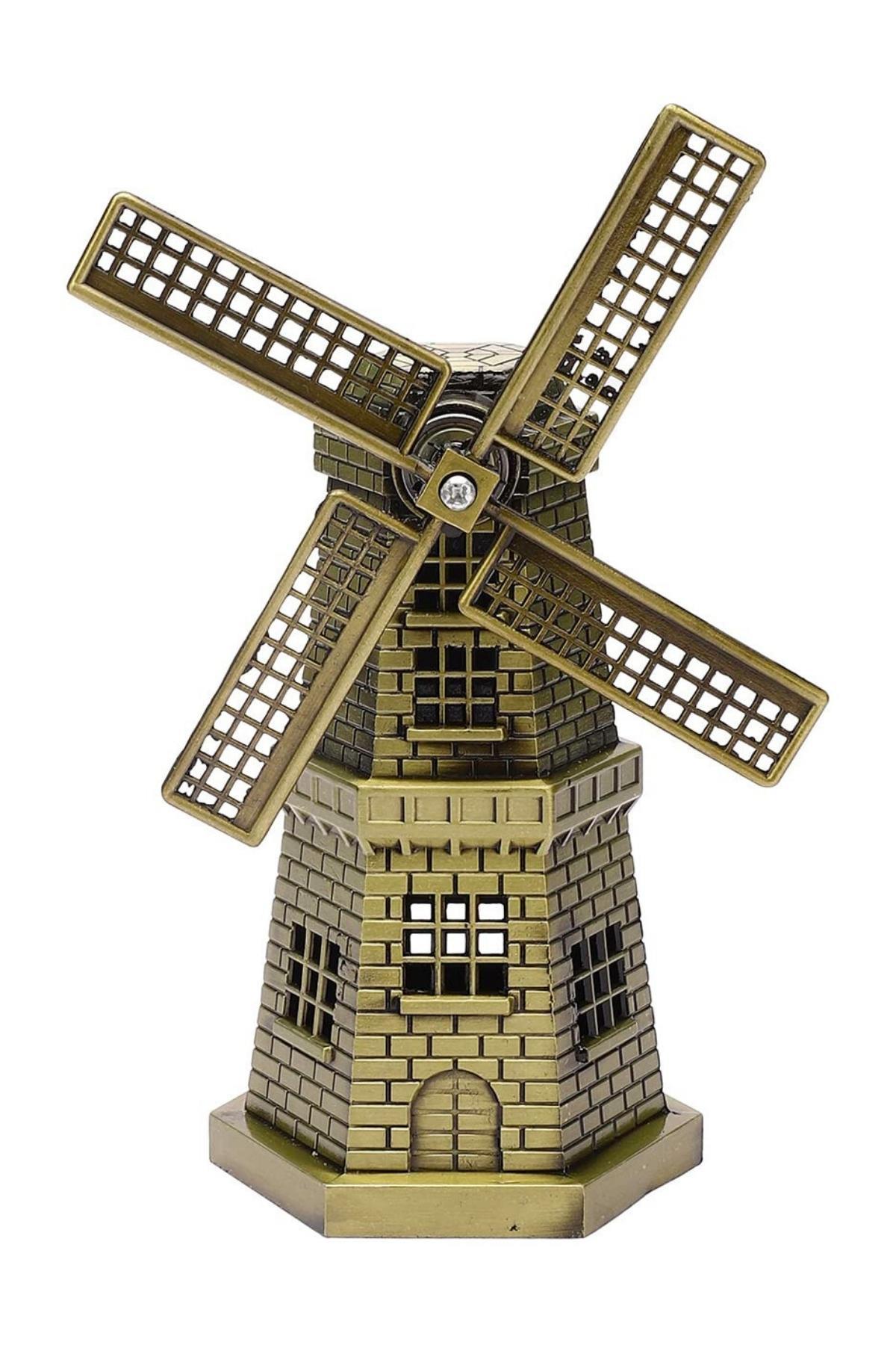 Vintage Metal Hollanda Yel Değirmeni Biblo Antik Bronz 17 cm