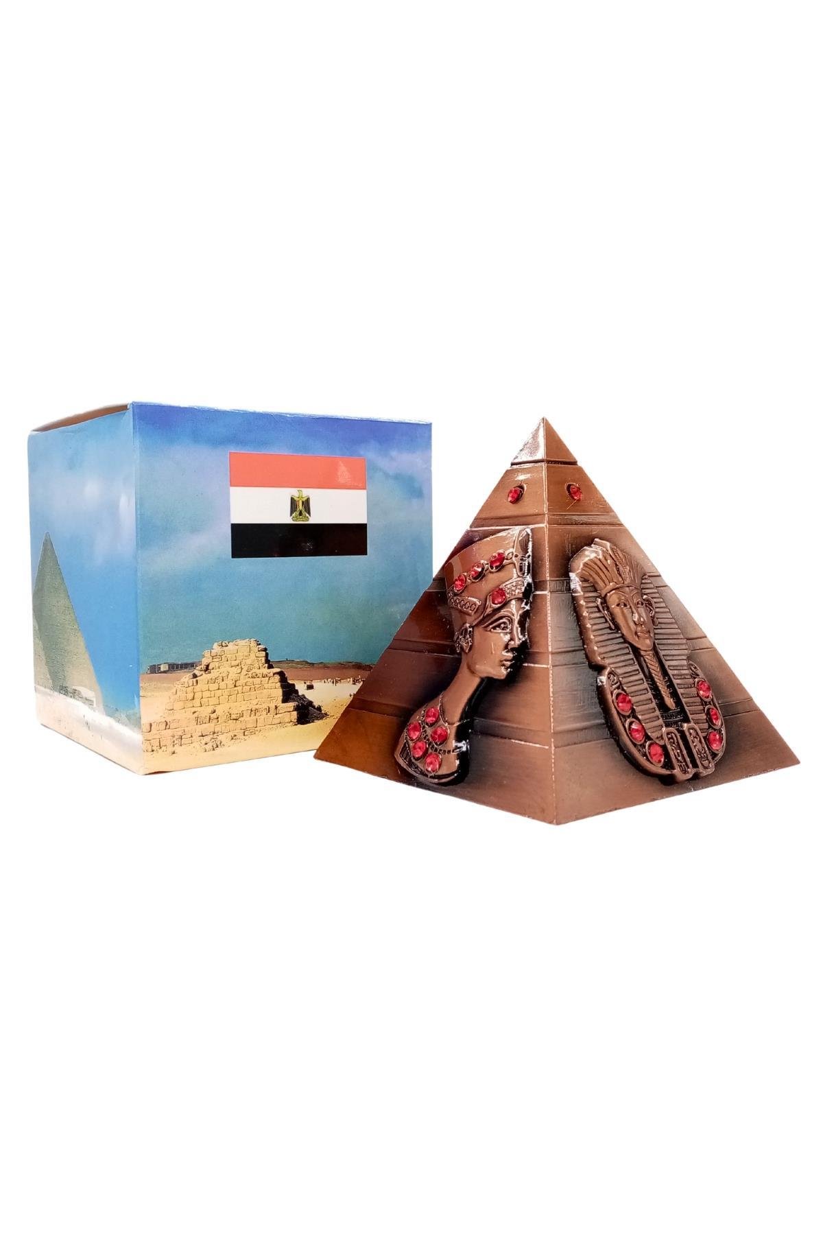 Piramitler, Mısır'ın En İkonik yapılarıdır.Orjinalin birebir Minyatür Modeli 9 cm boyunda olup oldukça detaylıdır. Dört cephesi de Atik Mısır Figürleri ve kırmızı taşlarla donatılmıştır.